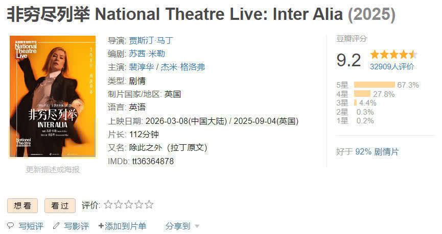 超3万东说念主为《非穷尽列举》打出了9.2的超高分,以全齐的上风力压《镖东说念主》,成为本年度评分最高的电影。