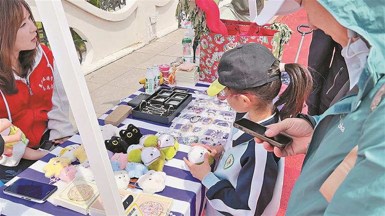 在免费露营区里,市民章先生正和家东说念主沿途搭帐篷、摆餐具。他告诉记者,基本每周都会来太阳岛野餐,这里不仅环境好,还有为旅客提供的免费露营区,一家东说念主在这里一边亲近当然,一边享受天伦之乐。今天来的手艺无意赶上太阳岛举办端午文化旅游周,吵杂的氛围更让一家东说念主兴奋不已。“端午节将至,趁便就在景区的集市里给孩子买了几根五彩绳和艾草,还买了小粽子的毛绒玩物,还有文创的雪柜贴和小葵扇,孩子相称兴奋。