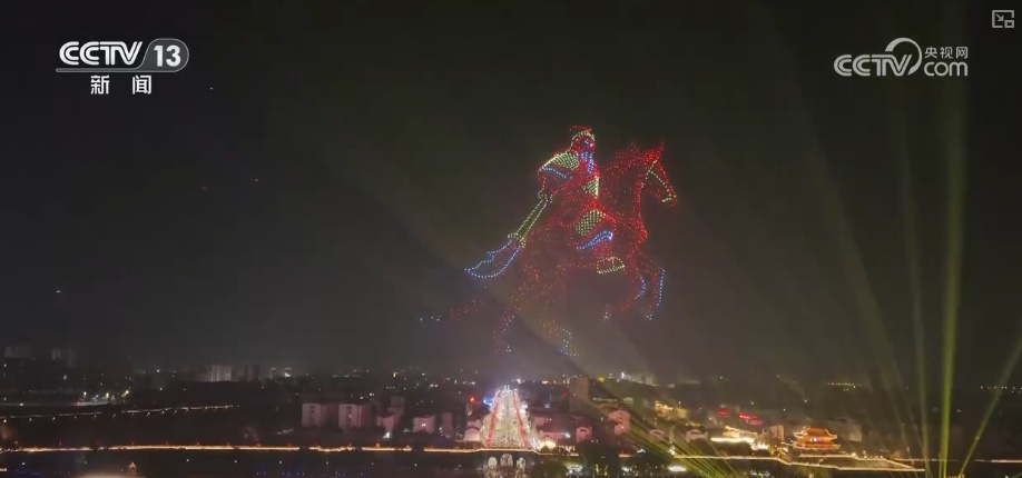 在荆州古城,2026架无东谈主机翩然升空,以天为幕,勾画出一幅幅绚烂的光影画卷。凤凰展翅,象征楚文化的涅槃与高远;赤兔腾空,呼应关羽的忠心与踊跃;关公横刀立马的雄姿开yun体育网,在夜空中凝结为妍丽祝颂。整座古城流光溢彩、光影交错,展现出一幅古今会通的文旅新画卷。