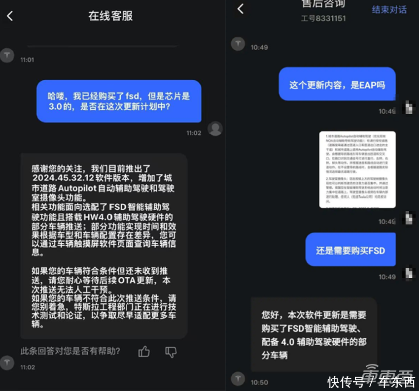 特斯拉运转推送更新的音问一出,多数特斯拉车主眷注我方是否能收到该更新,有好多东说念主向特斯拉在线客服和售后照顾。