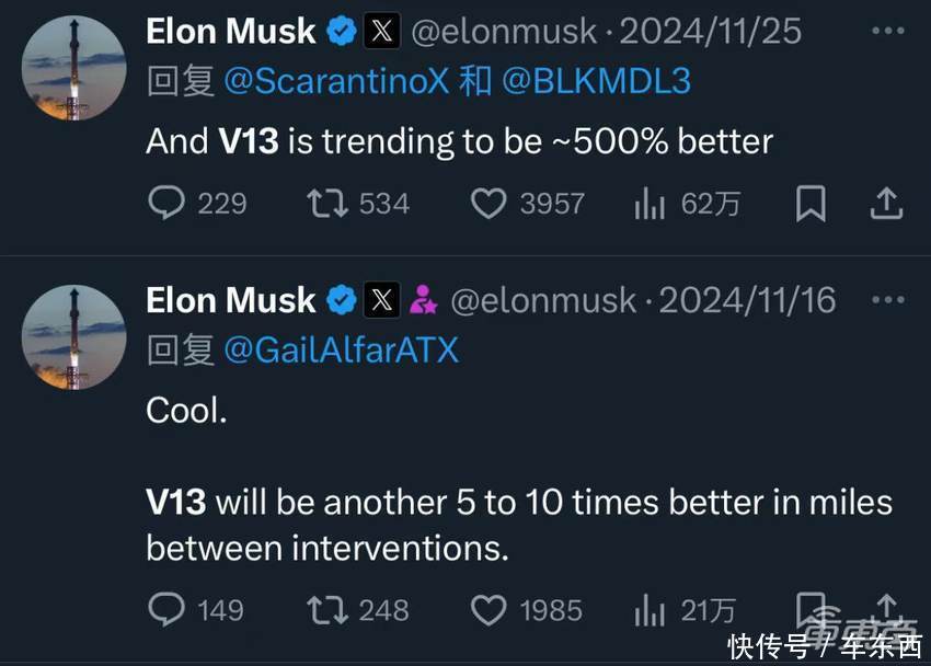 马斯克也在应答媒体上径直发文指出,FSD V13的才略是上一代的5至10倍。