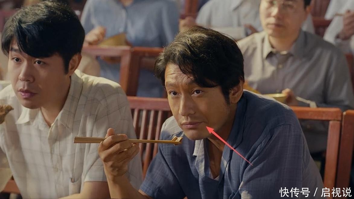 干部集体用餐那场戏,其他东谈主夹菜、咀嚼、言笑齐当然清醒,只须他夹起一块肉时慢行为般送进口中,下巴机械高下转移,仿佛或许不雅众订立不到他在“演吃饭”。