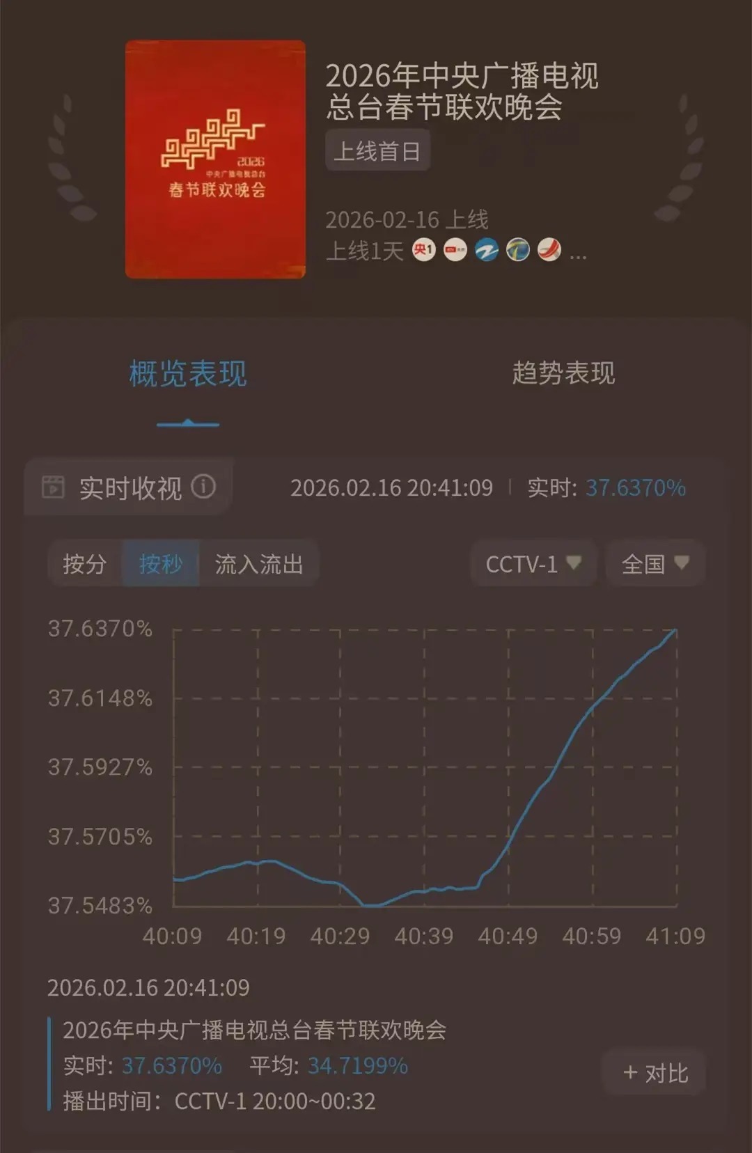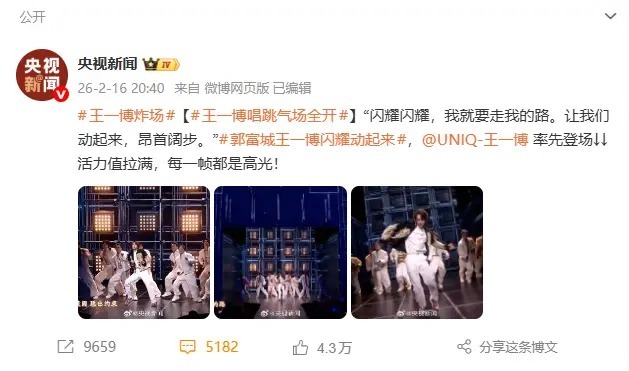 呈现到收视率数据上,亦然一个直线蹿升的场所。《能干动起来》字幕出现,王一博早先登台,继而,酷云及时的收视率数据当中,按秒为单元,便出现了数据直线蹿升的场所。不错说,恰是伴跟着王一博歌舞节商酌炫酷登场,央视春晚的收视率也再创了新高。王一博郭富城新老两位天王实力派的同台,显然也成为2026年马年春晚上最令东说念主动情的一幕。