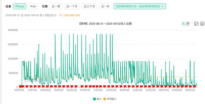 在这一大环境下,《原神》的弘扬简直有些差强东谈主意。七麦数据披露,从2020年9月推出于今,《原神》iPhone端的收入在2023年4月中旬开动下滑。