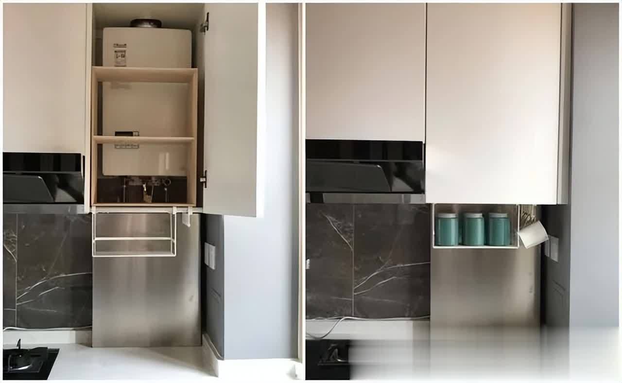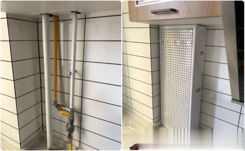 ▲若燃气表吊柜能笼罩,下方管说念因有阀门需常关闭,可网购定制洞洞板,加挂件能吊挂唾手物品,柜门可随时掀开,便捷实用。