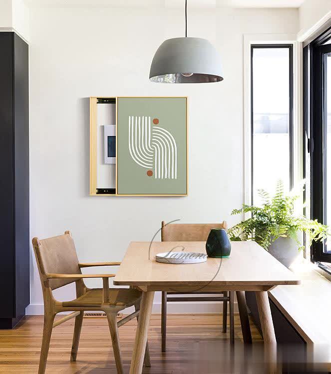 ▲一种雷同挂画的作念法,是透气透风散热的遮挡框,能取代出丑的金属或塑料弱电箱达到遮挡主张。