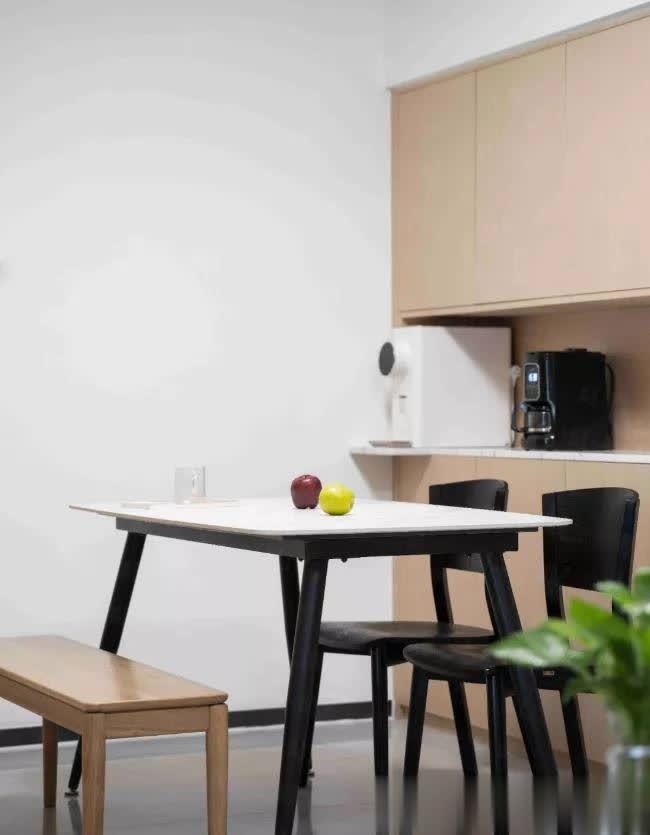 ▲短长配餐桌置于浅木色包围之中,让视觉更具档次感。