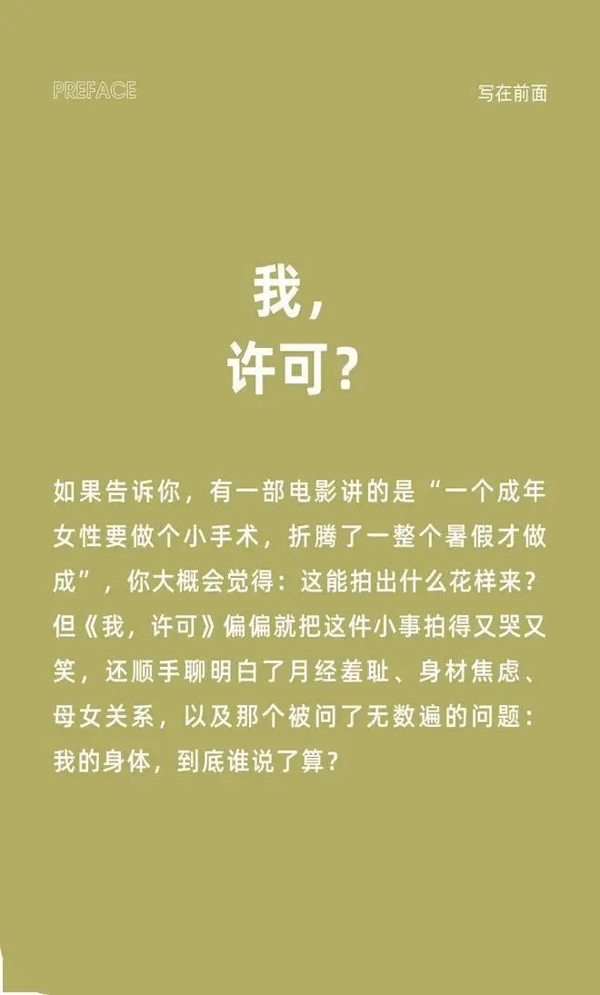“许可”这个名字,既是女主角的名字,亦然这部电影立意的中枢——对我方东说念主生的“许可”。不是等别东说念主署名,更不是等别东说念主允许,而是,我我方说:我许可!