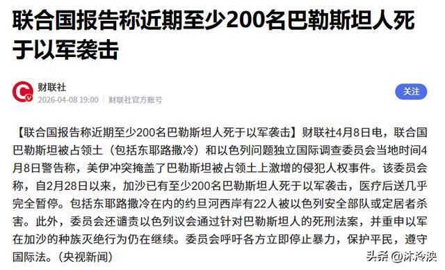 麇集国走访委员会4月8日径直刺破真相,好意思伊冲突不外是幌子,信得过的东谈主谈灾荒,早已在巴以地区失控爆发,东谈主权暴行以惊东谈主速率激增,没东谈主能掩盖这些血淋淋的事实。